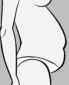 III.- Mini-abdomen: se localiza debajo de la zona umbilical y es muy ligero, pero quien lo tiene no lo quiere tener porque estropea su silueta que suele ser delgada y estilizada… Puede aparecer en mujeres que se cuidan, hacen deporte y comen sano y tienen una vida activa y exigente, en ocasiones también padecen estreñimiento.